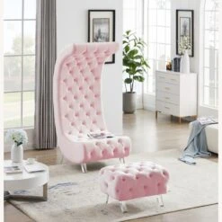 • Its soft pink velvet upholstery is sleek and chic to the touch and feels oh-so-soft against the skin, beckoning to visitors to sit down and stay awhile.