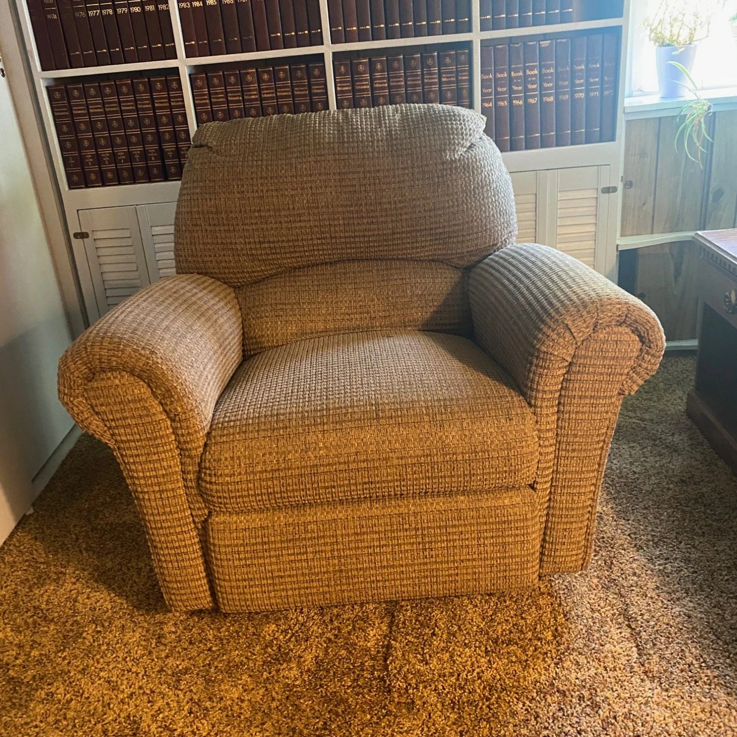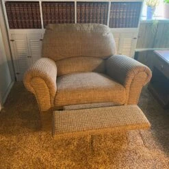 Seller’s Notes: Chair has been in an unused room for many years. Though it’s old in years, it’s in great condition as no one ever uses it. My parents house is for sale so everything must go. I am selling the matching double recliner loveseat in a separate listing. If you are interested in both I will bundle the price. I am unsure of the brand, maybe Lazyboy?