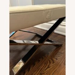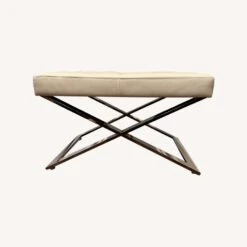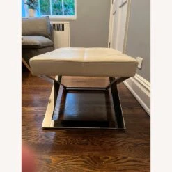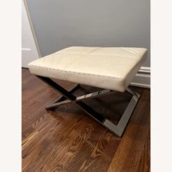 Seller’s Notes: Classic white leather and metal Aster X Ottomon. Designed by Jean-Marie Massaud, this ottoman is a sophisticated take on the classic director’s chair. A simple, linear, X-shaped base supports the elegant and minimalist seat. This was purchased at the Poltrana Frau showroom 10 years ago and has served as extra seating in our living room for years. It is a solid, sturdy piece in great condition and with a little leather cleaning would get even better. The metal legs are in near perfect condition and the leather is in great condition without any scratches or tears – only some mild stains which are fairly subtle unless looking closely.