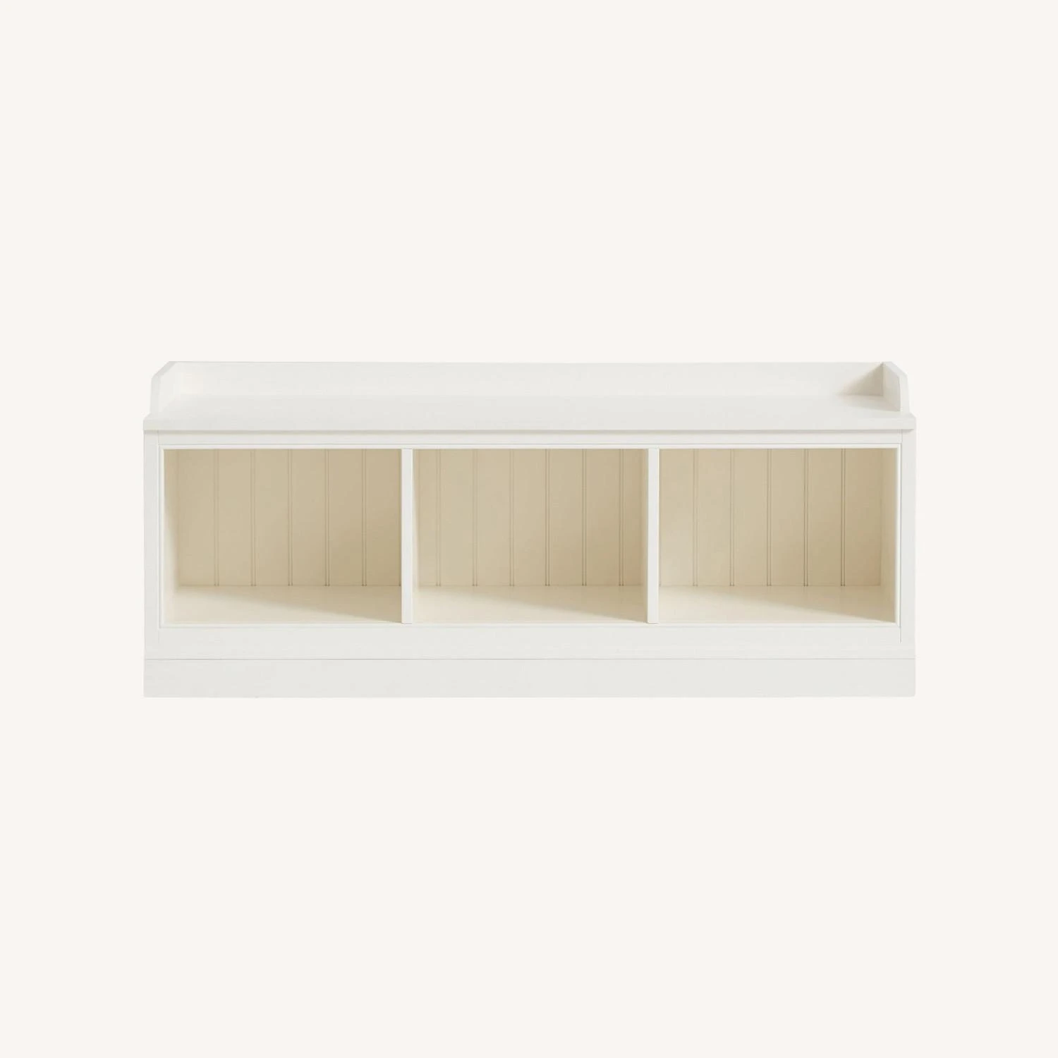 Three spacious cubbies, for storage. Can pair with baskets (sold separately) or top with cushion (sold separately).
