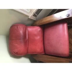 Seller’s Notes: A beautiful red vintage looking chair and ottoman set looking to be in home. This chair reclines for extra comfort but still keeps itβs amazing style. The set is satisfactory condition due to the discoloration and fading of the cushioning.
