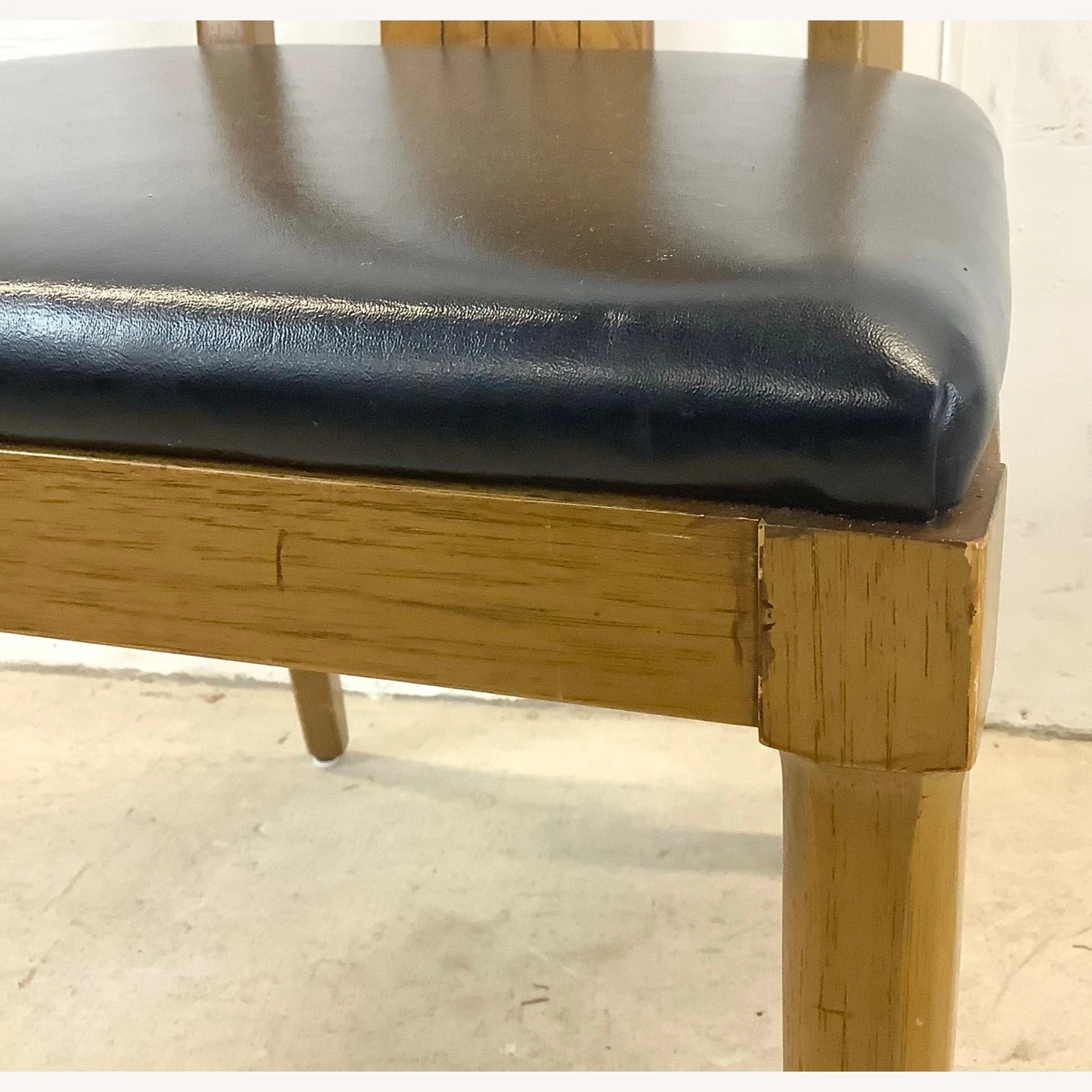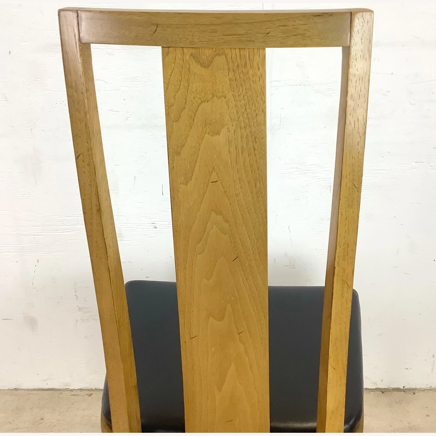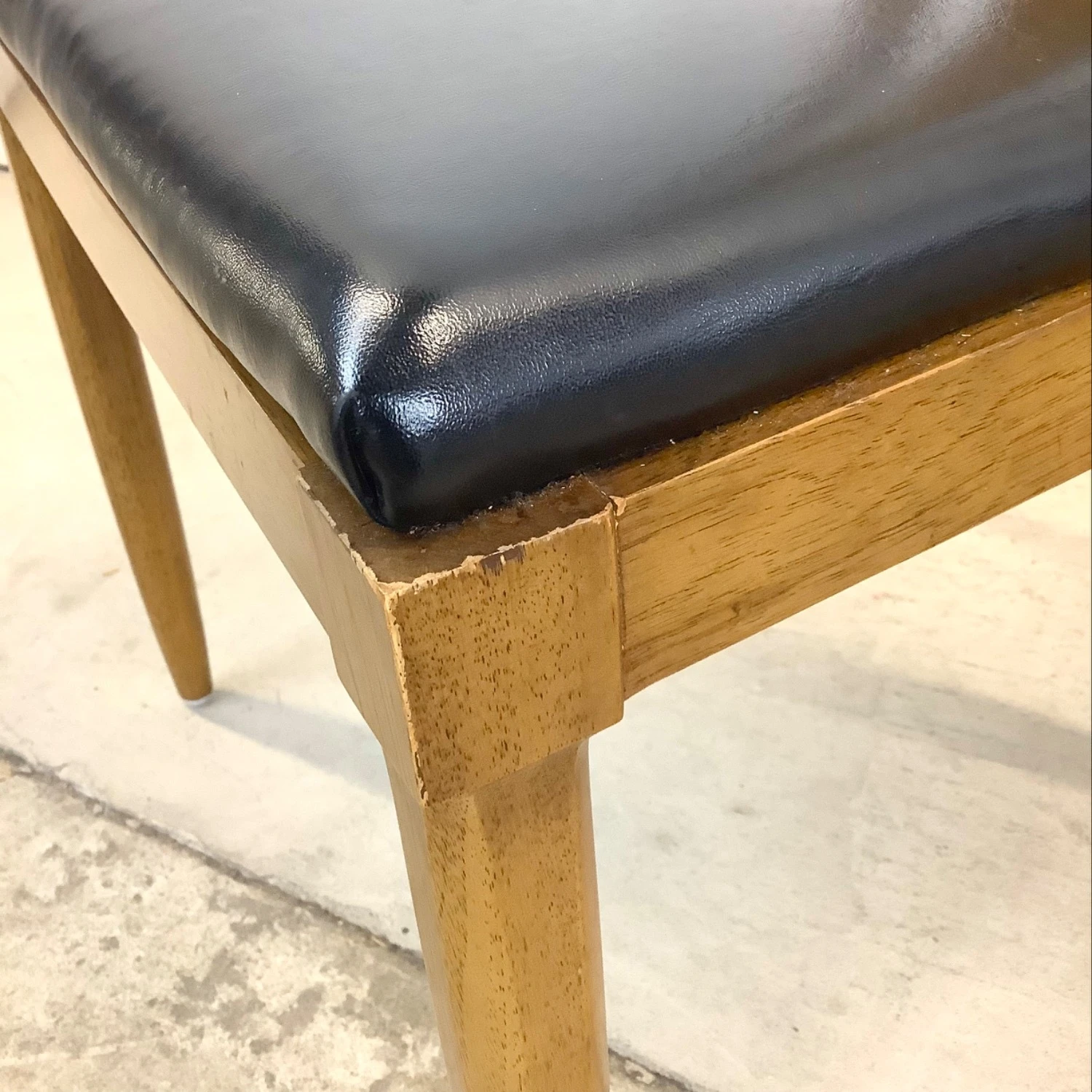 Seller’s Notes: This matching set of six dining chairs from the Tomlinson “Sophisticate” line features solid wood chair frames with upholstered seats and tall seat backs. This substantial set of vintage dining chairs makes a striking addition to any dining room or kitchen seating area.