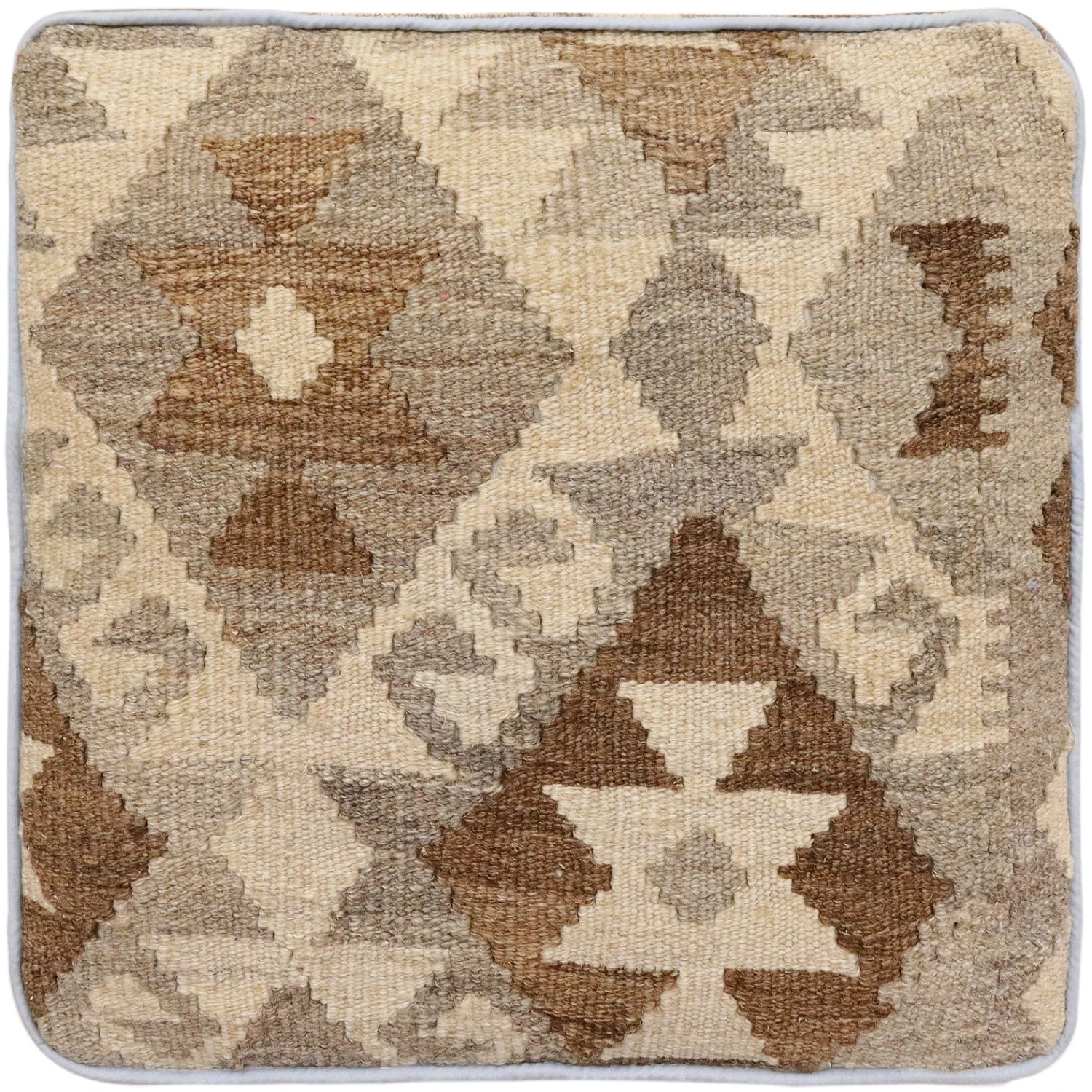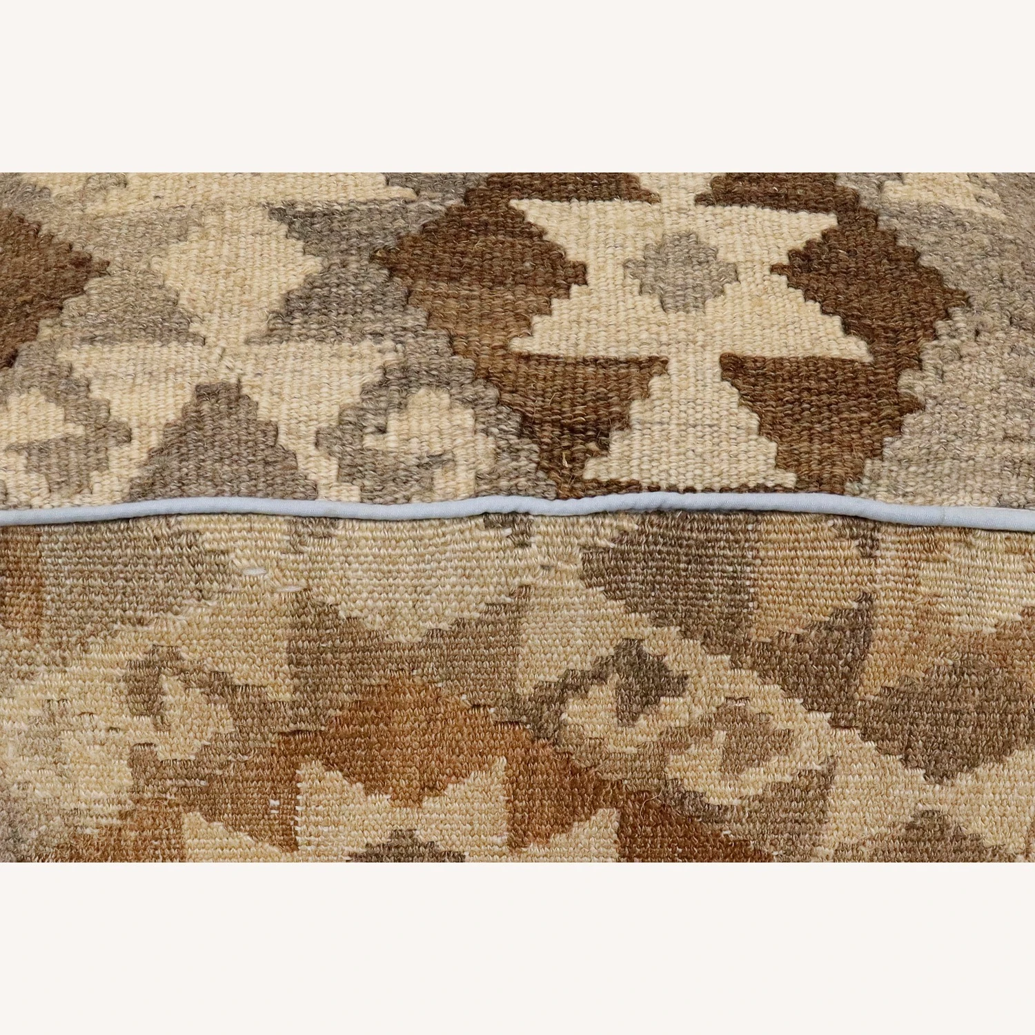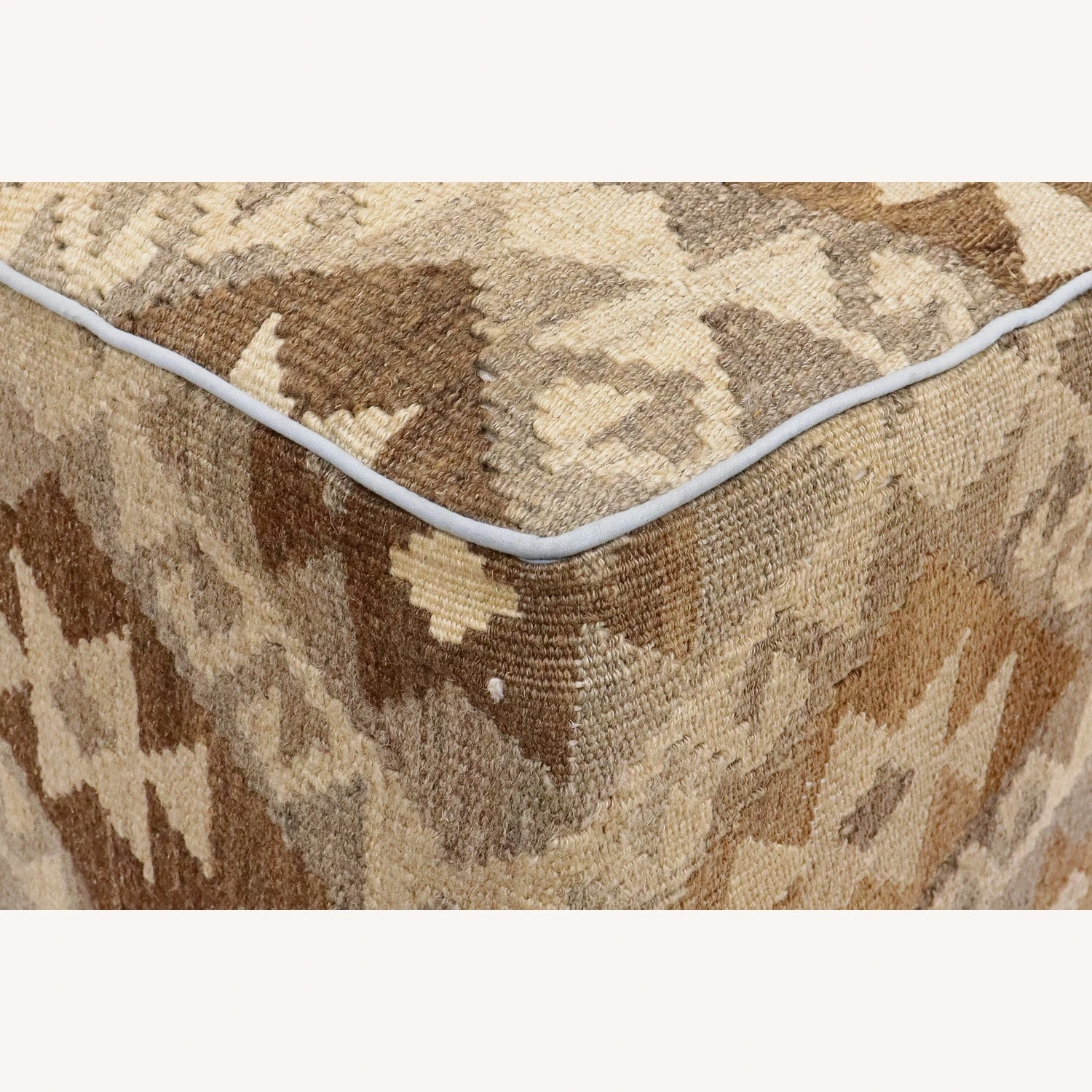 Seller’s Notes: Chic handmade ottoman crafted using wood and upholstered using hand-woven kilim wool rug is a multi-purpose fashion pouf which will add dimension, color and style to your decor. Inspired by geometric motifs in any array of effervescent color pallet grounds any space with elegance and sophistication.