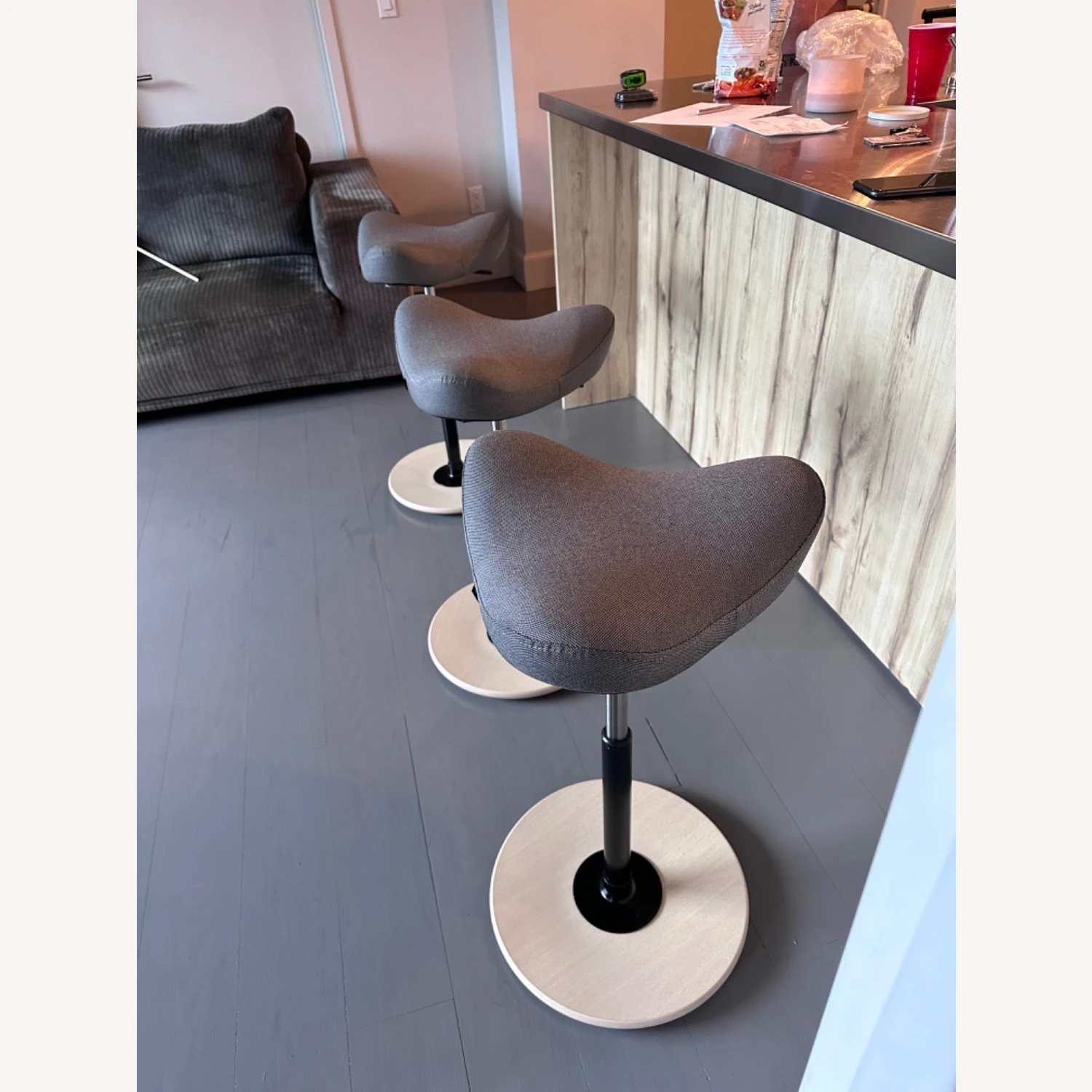 Seller’s Notes: Less than a year old. Move to furnished apartment. Stools are adjustable for his gut. Designed as a movement chair to find optimal stability improving muscles and posture.