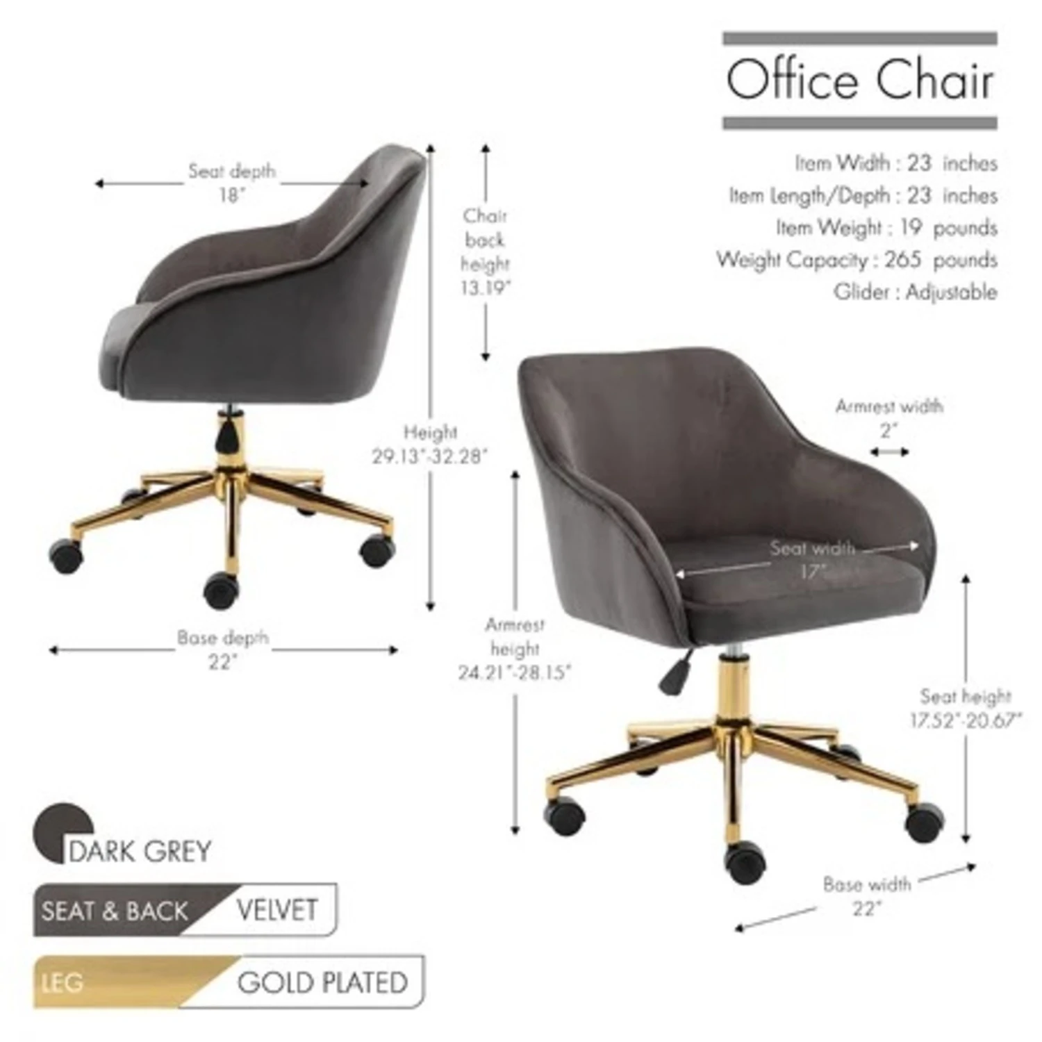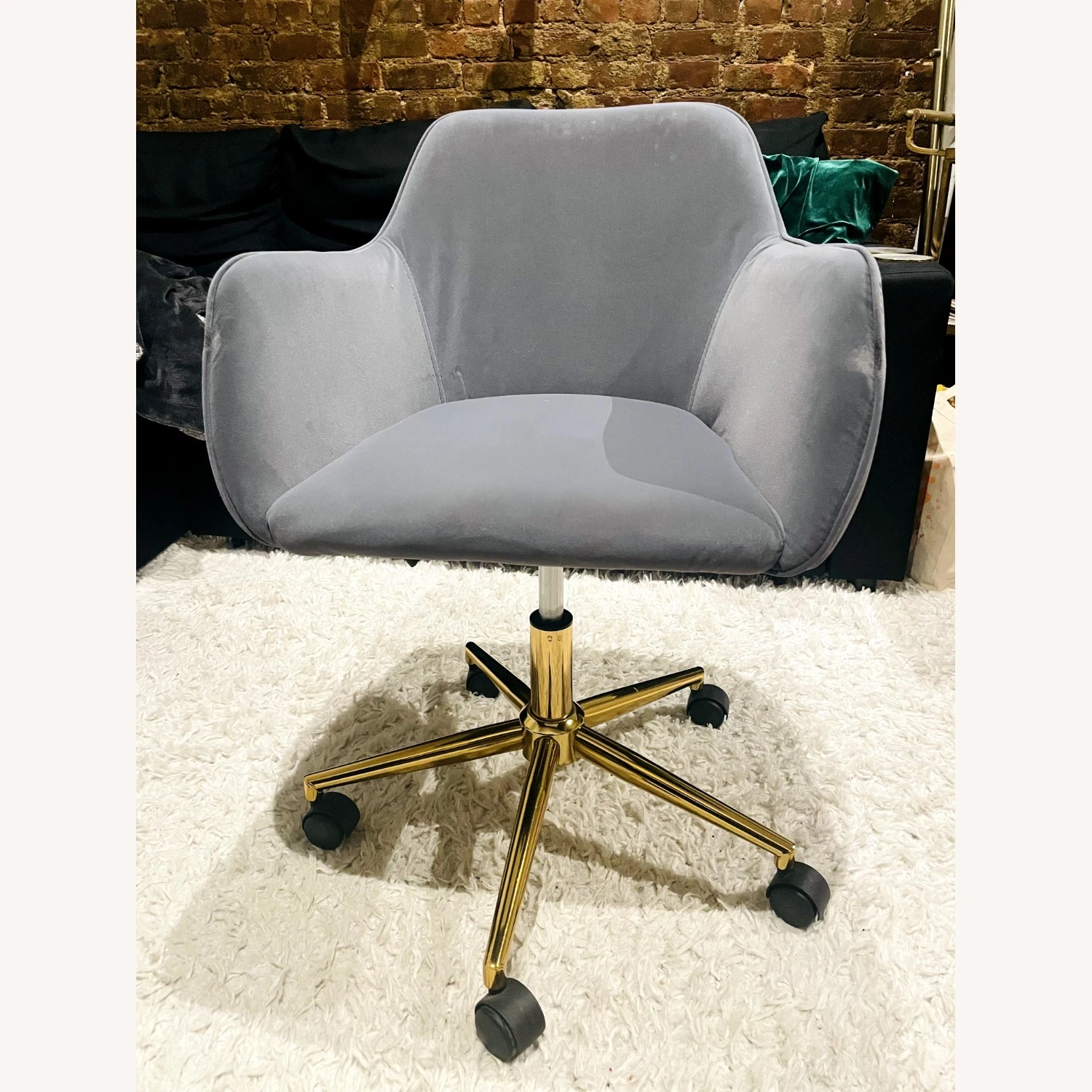 Luxurious Grey Velvet office chair with Polished Gold leg details.