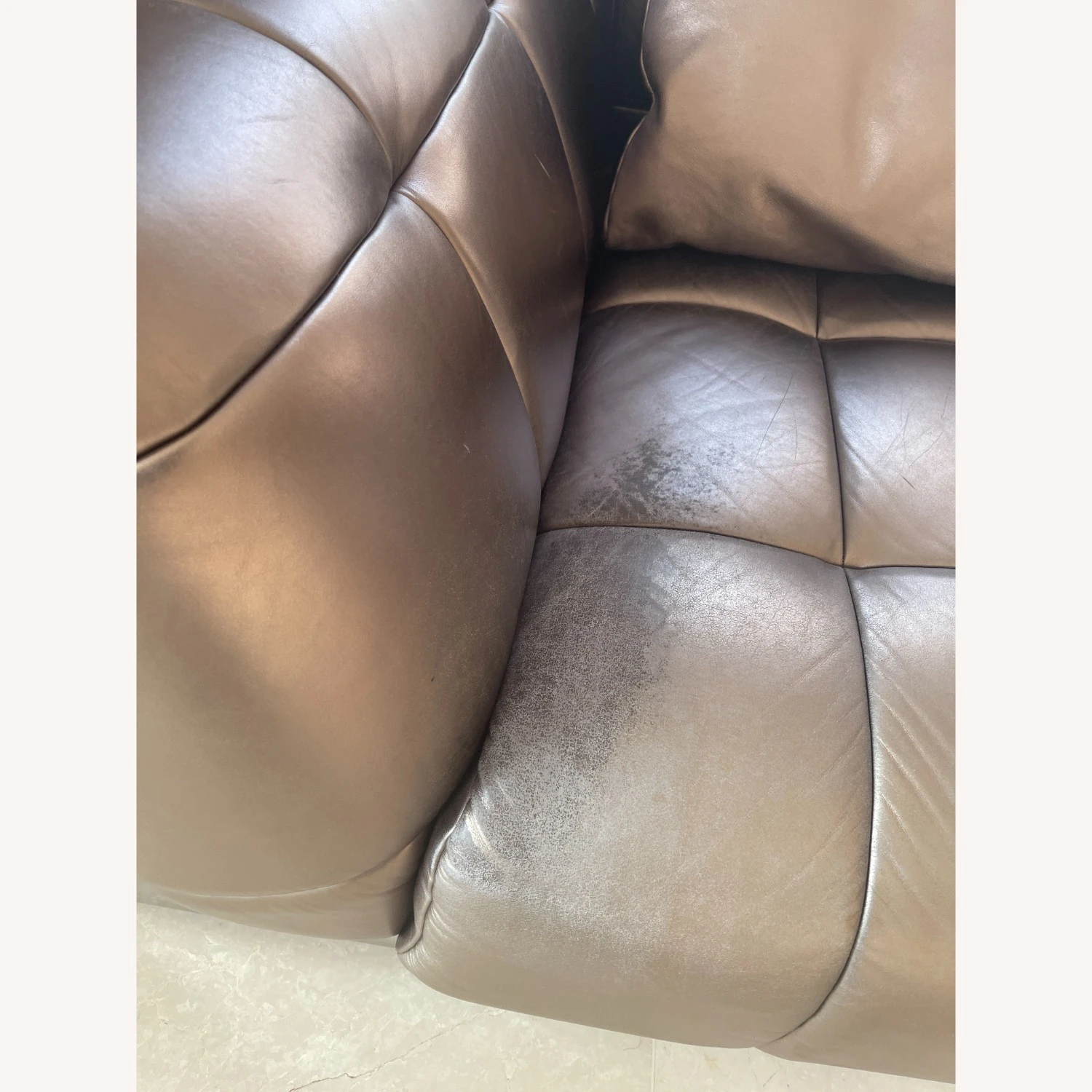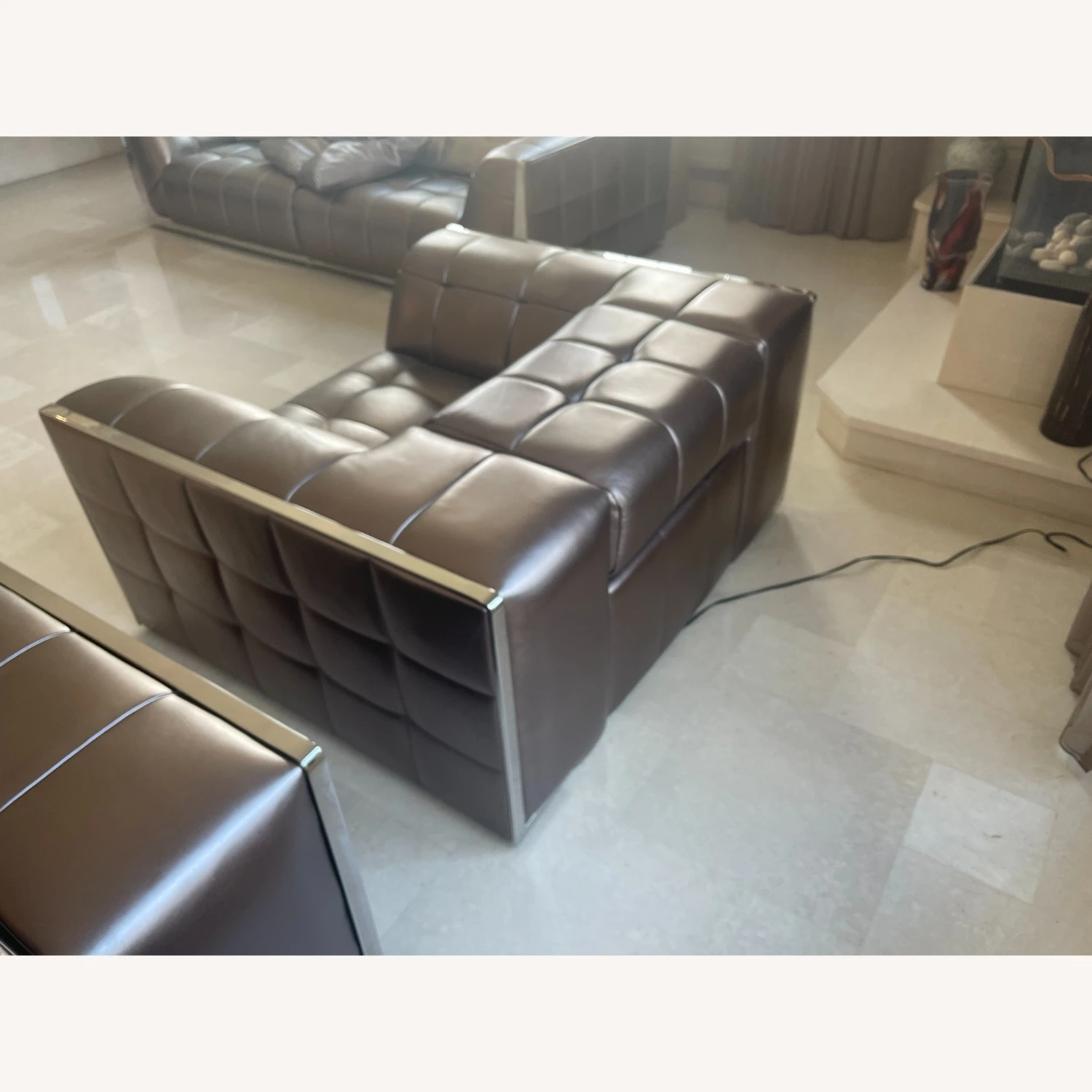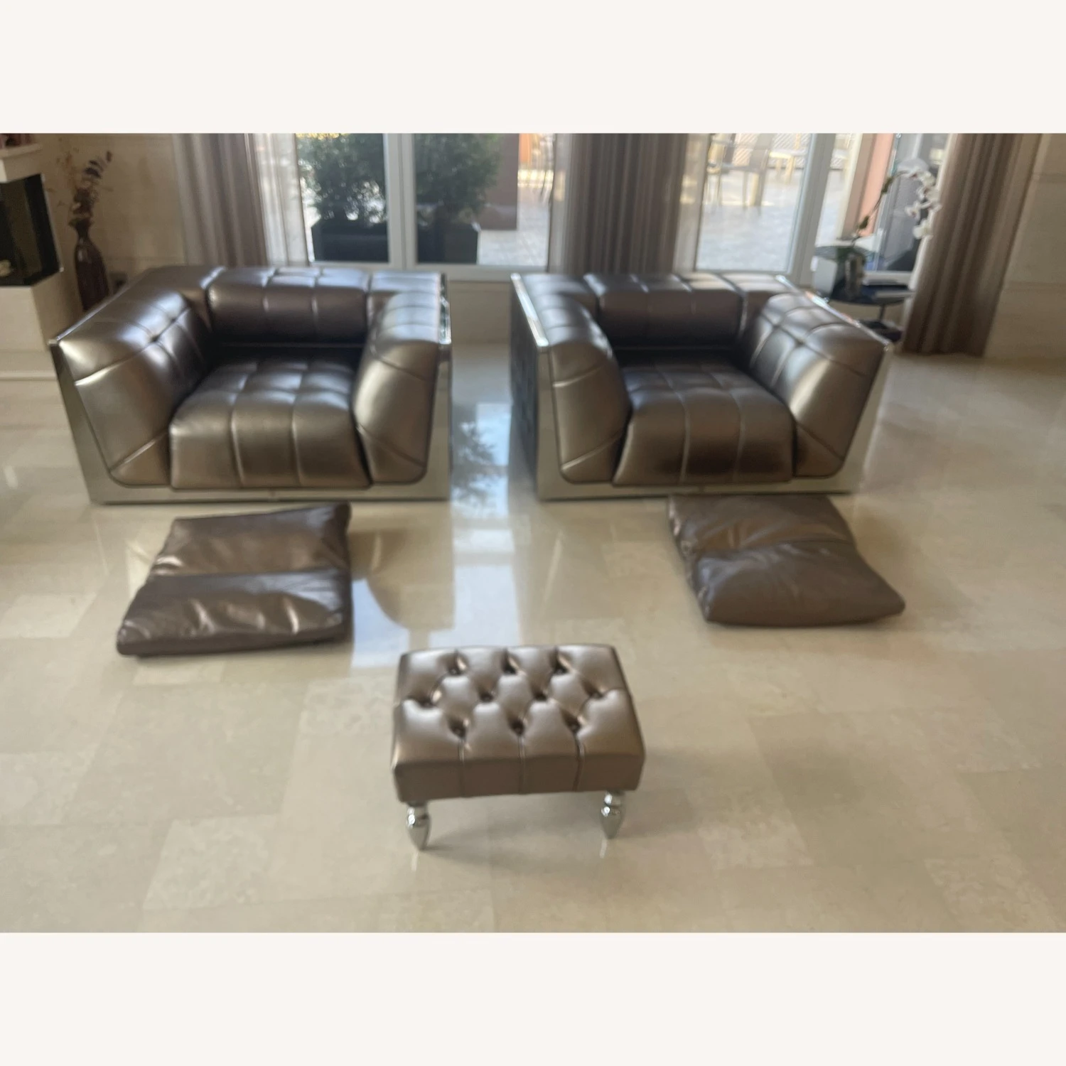 Seller’s Notes: Visionnaire – Reymond electric recliner chairs, leather metallic brown color with comfort pillows made of the same leather . Italian made and imported in the beginning of 2015 directly from the Factory. some leather discolorations from day to day use. part of a larger set ( sofa and ottoman sold separately )