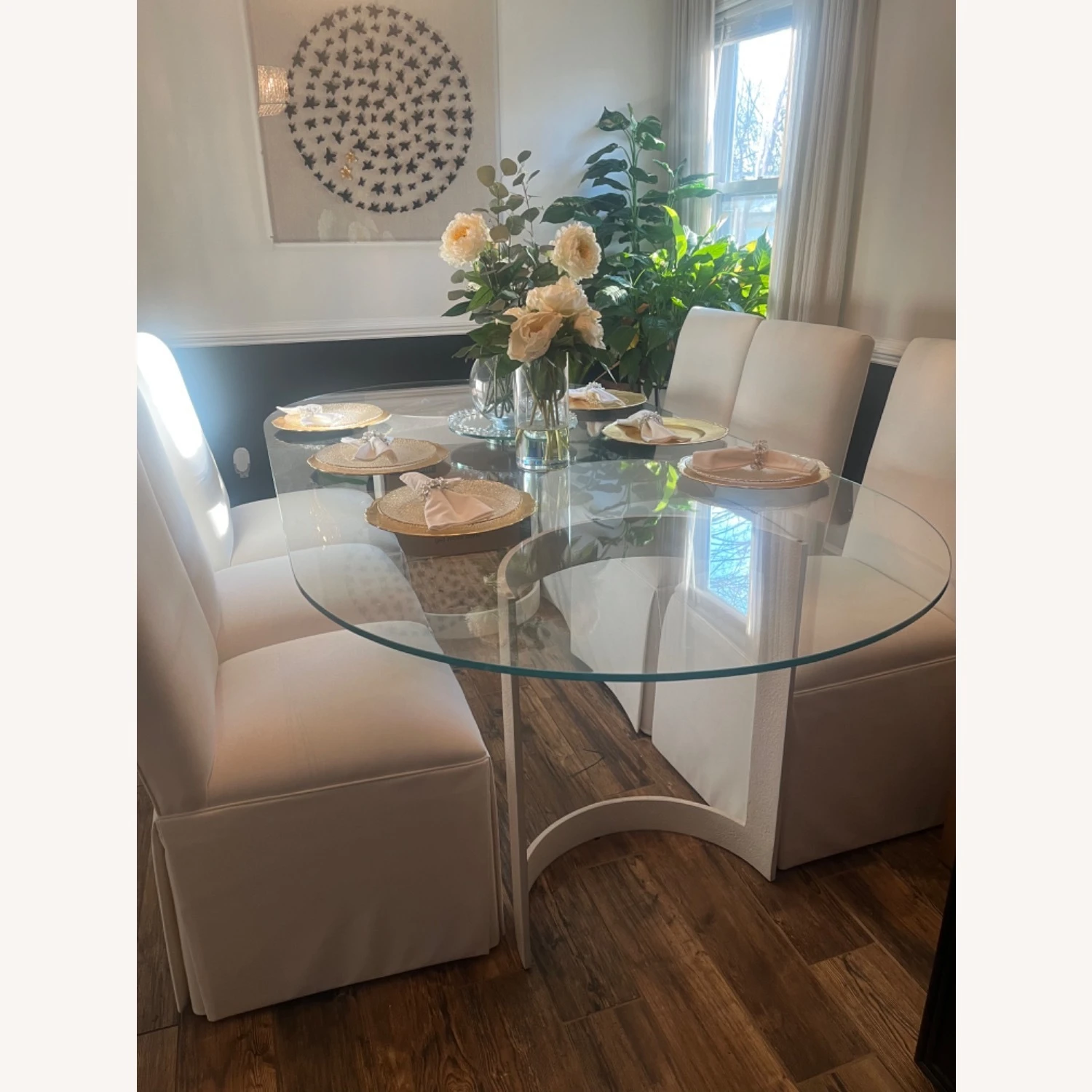 Seller’s Notes: Dinning chairs is white 6 total $150 each / per chair in great condition easy to clean no stains owed for a less than a year moving sale.
