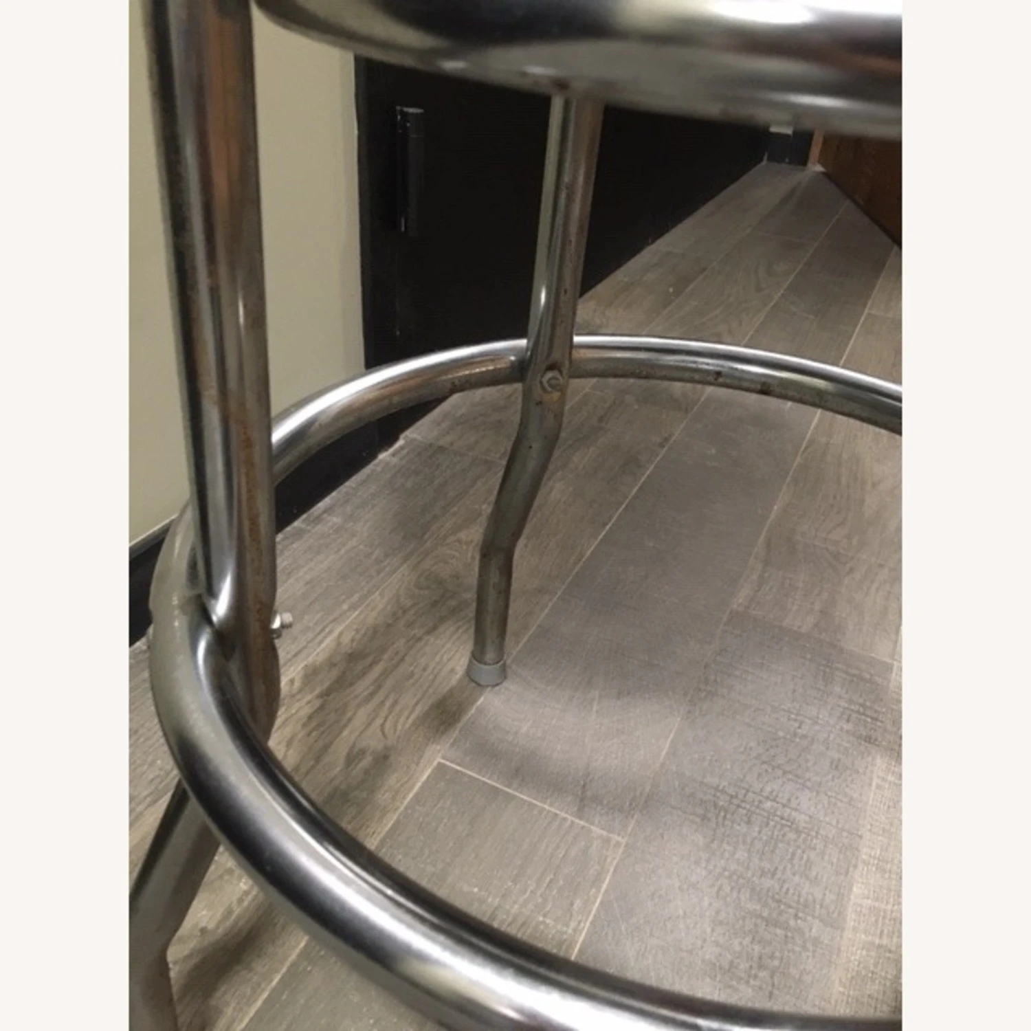 Our stool is reminiscent of one you’d find in an old-style American diner. Made of heavy-gauge tubular steel, it has an air-cushioned foam seat that rotates 360º.