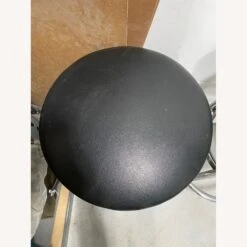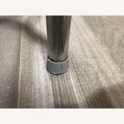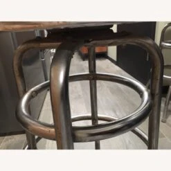 Plastic foot guards protect floors. 30″ high, with a 15″ diam. seat.