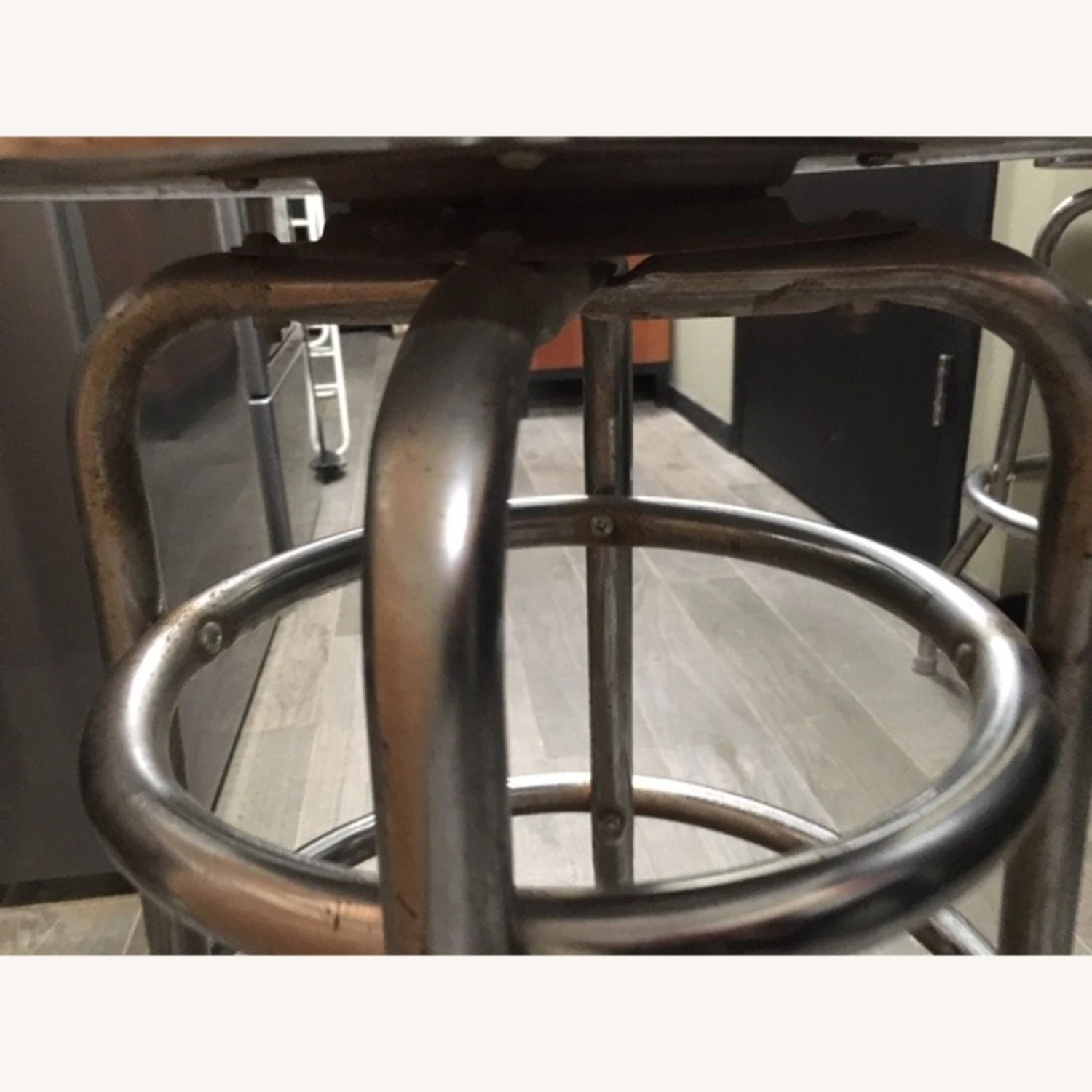 These stools are pre-loved. Please look at all of the photos carefully. I am not sure what is on the seat cushions. I only wiped with soap and water. They would be a great little refurbishing project, as I believe if you know how to take off some of the superficial blemishes such as the rust, it will greatly improve the appearance. Please note that Stool #3 is missing all its feet covers. I would say that the condition from best to worst is Stool #1 , #2, then #3. #1 and #2 are pretty comparable. If you are interested in just those stools, you may message me and we may be able to negotiate something. It is ideal for me to sell all three.