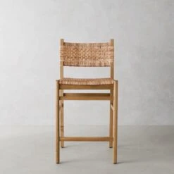 Woven rattan seat back is framed in kiln-dried, sustainably harvested engineered wood.